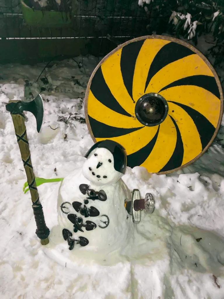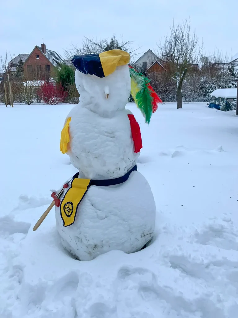 Sogleich machten sich die Maiden und Recken der Bovelzumft – teils unterstützt von ihren Kindern – auf, um im Wettstreit die wohl schönste Schneefigur zu erschaffen.