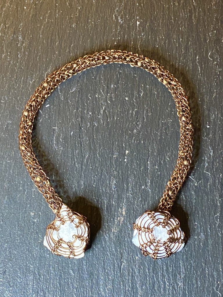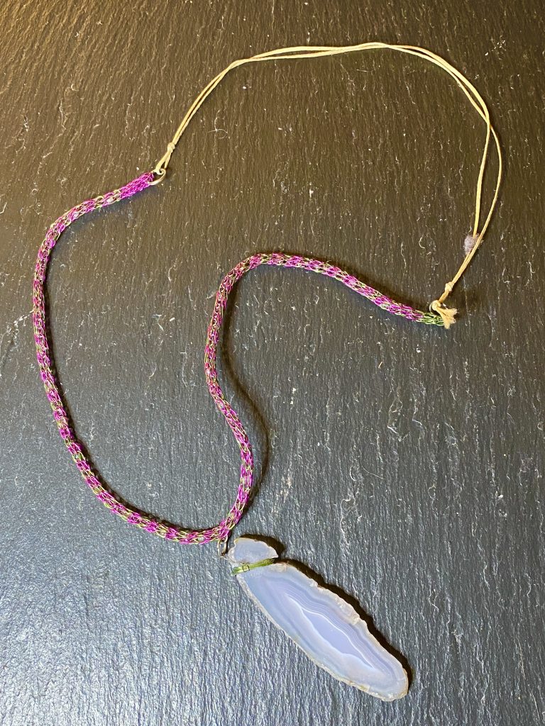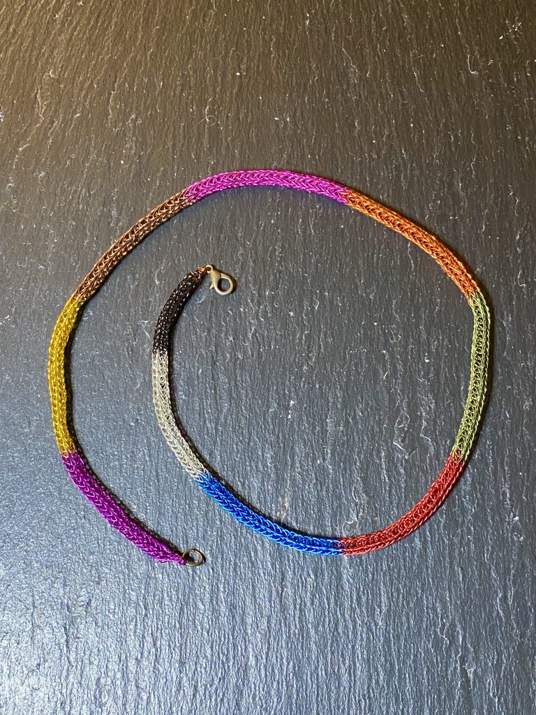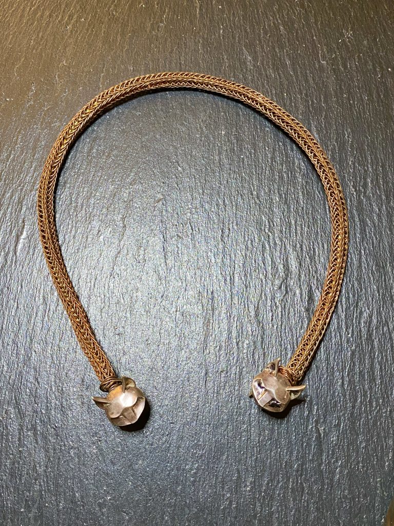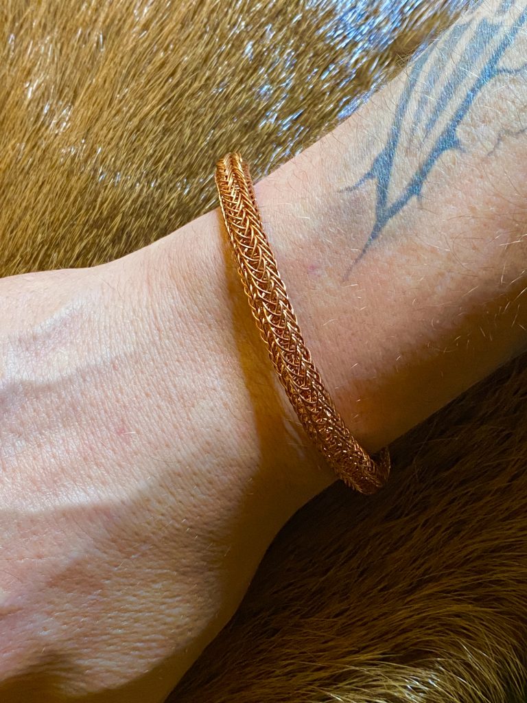 Wikingerstricken, auch als „Viking Knit“ bekannt, lässt sich bis in die Antike zurückverfolgen. Wobei die meisten Funde aus der Zeit der Wikinger (800-1050 n. Chr.) stammen. Diese historische Handwerkstechnik wurde von den alten Nordvölkern zur Herstellung von feinen Drahtketten und Schmuckelementen genutzt. Solche Stücke galten als Zeichen von Wohlstand und wurden oft als Handelsware genutzt oder als persönliche Amulette getragen.