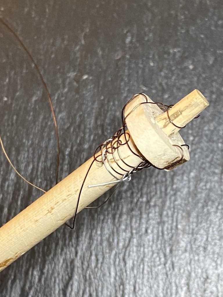 Kupferdraht und Messingdraht (0,25 bis 0,40 mm) lässt sich leicht verarbeiten. Er ist als Basteldraht auch in verschiedenen Farben erhältlich.
