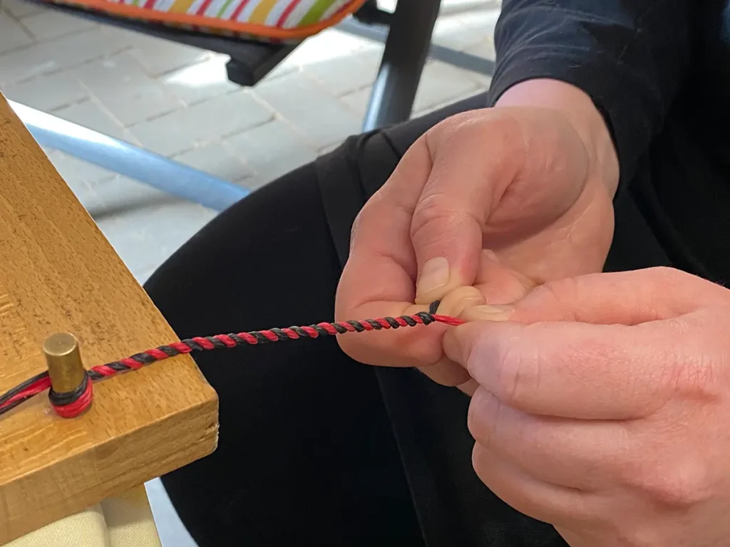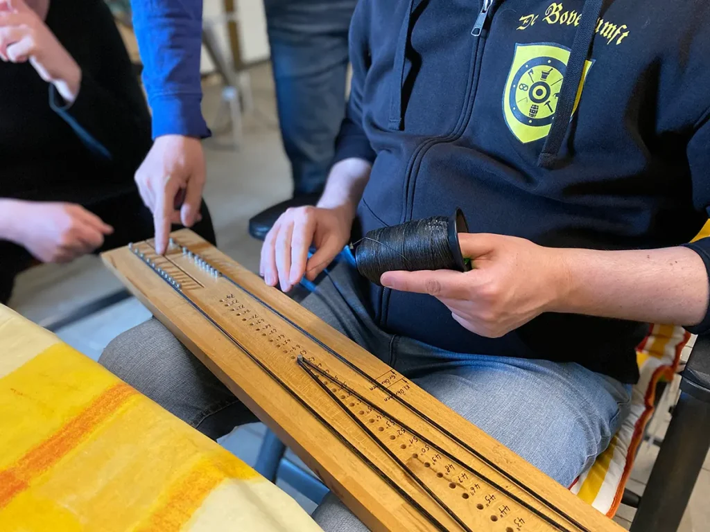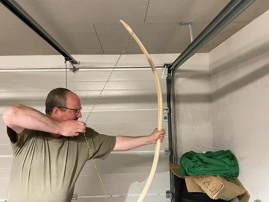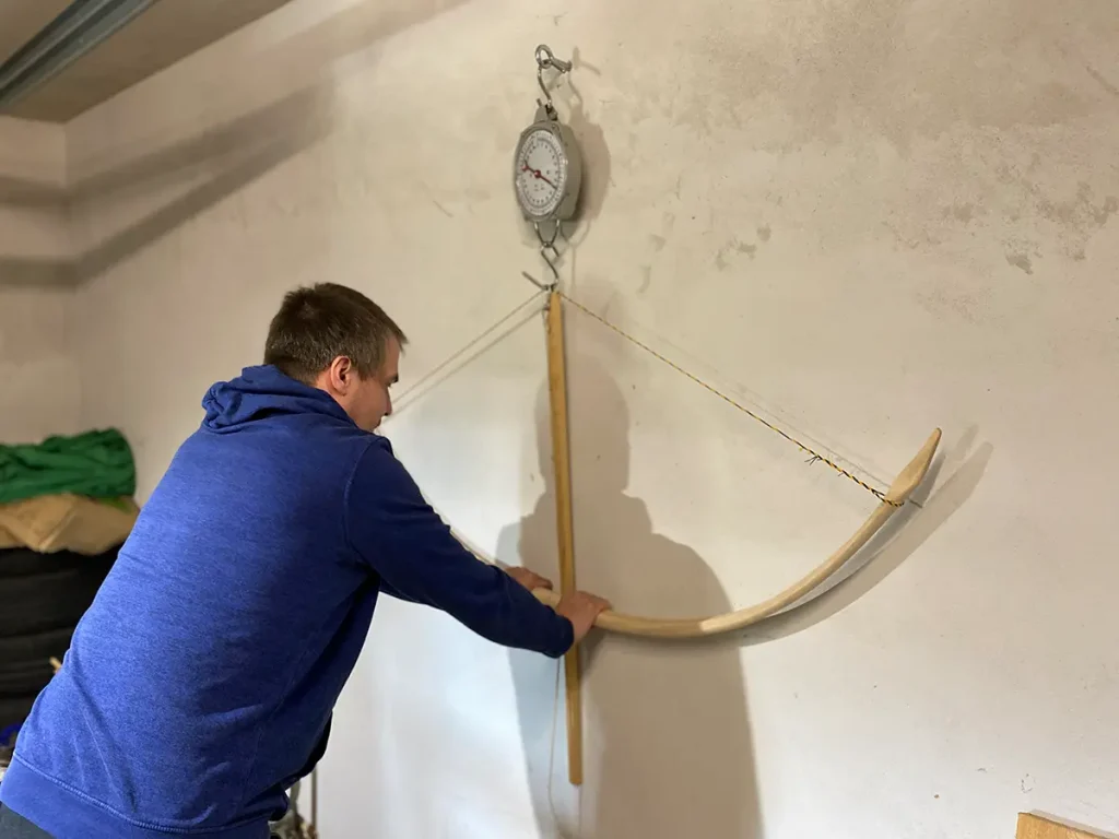 Beim Tillern wird die Symmetrie des Bogens und das Zuggewicht geprüft, welches zur Kraft des Bogenschützens passen muss. Nach letzten Korrekturen erhält jeder Bogen zum Abschluss eine sorgfältige Behandlung mit Leinöl oder einer farbigen Beize. Ein Griffstück aus Leder sowie eine in Wunschfarben gedrehte Sehne vollenden das Werk.