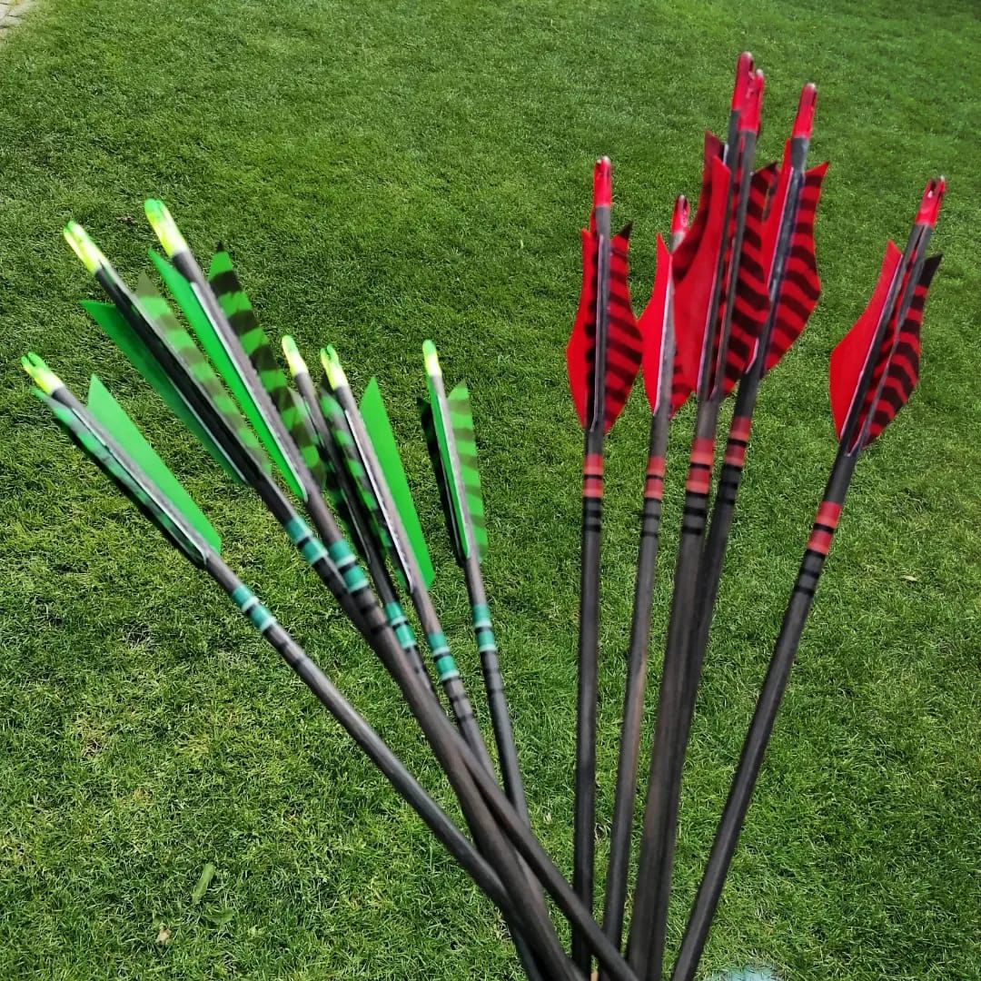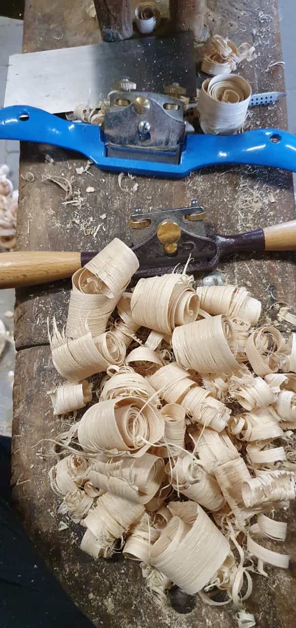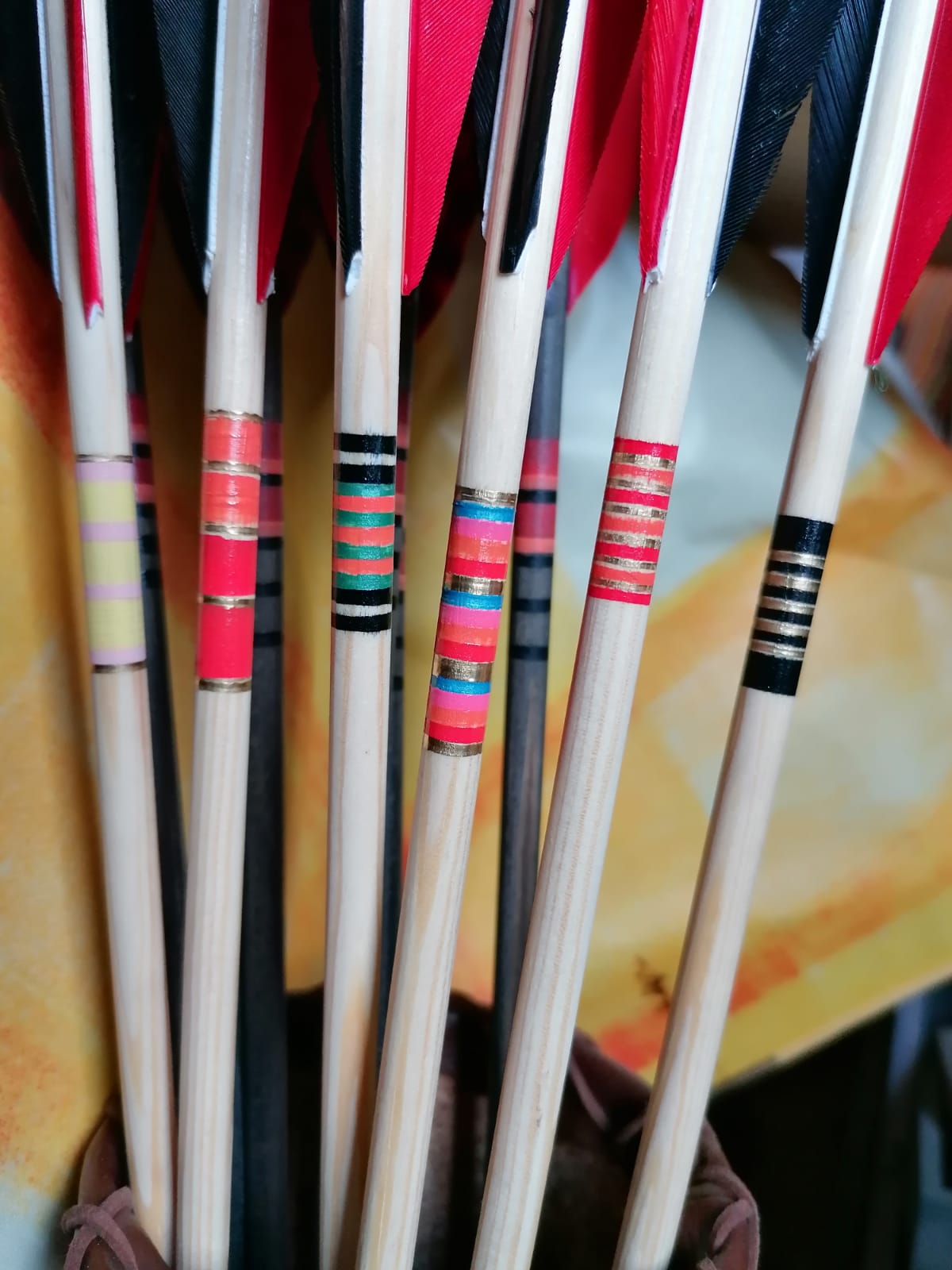 Unsere Bögen bestehen aus Holz oder Rattan. Wichtig ist, dass der Bogen individuell zur Körpergröße und zur Zugkraft des Schützen passt. Daher werden die Bögen und die Pfeile größtenteils selbst in regelmäßig stattfindenden Workshops gefertigt. Auch dort gehen wir traditionell vor und arbeiten mit Ziehhobel, Handsäge und Schleifpapier.
